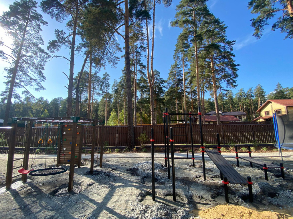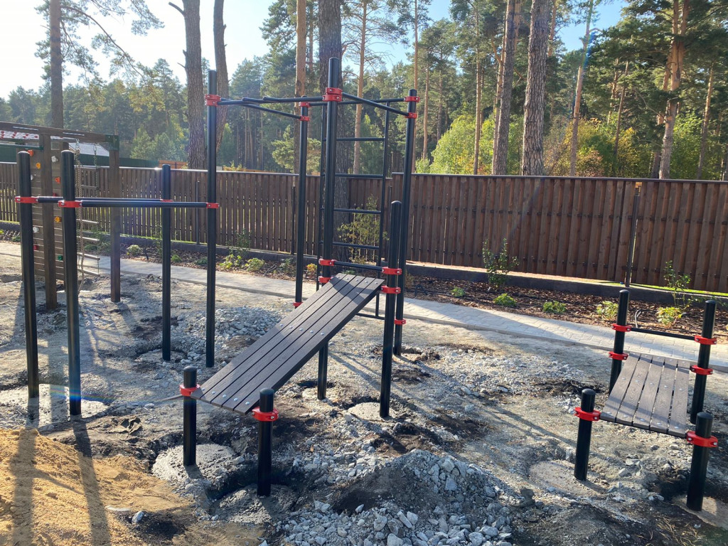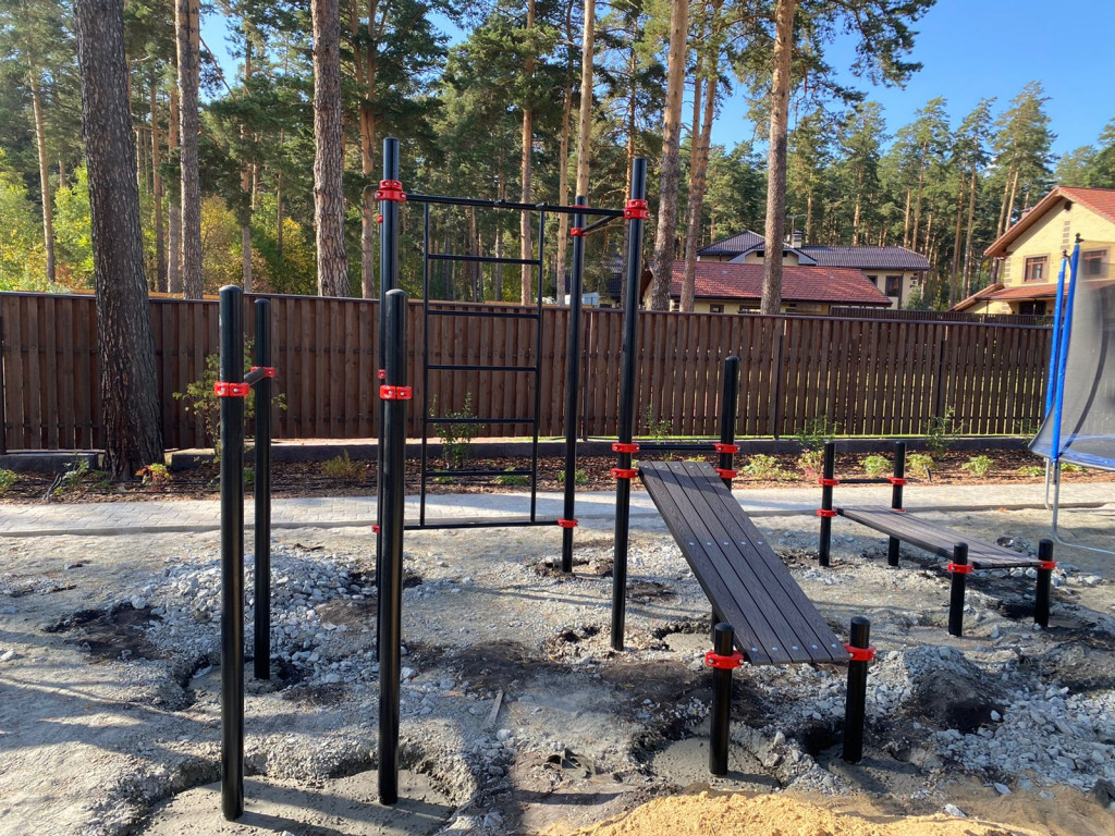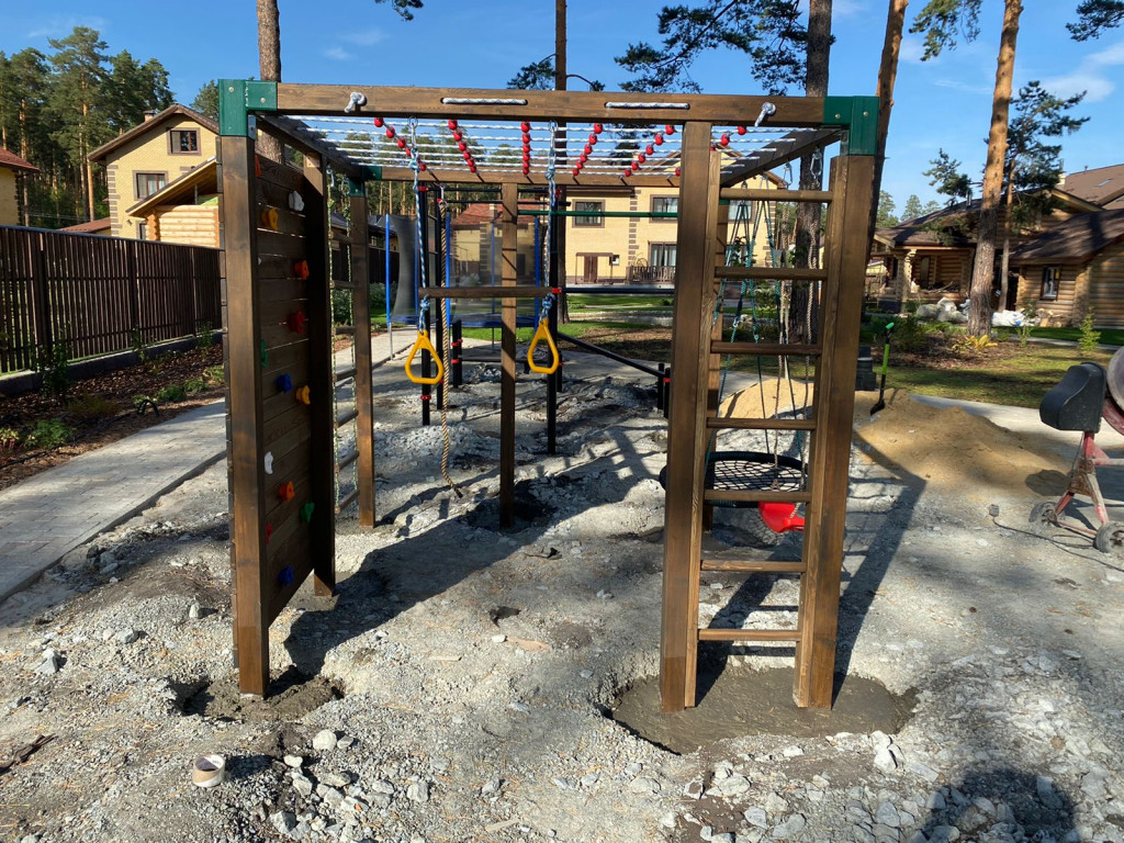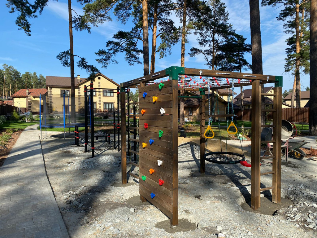 Подобрали модель в экостиле, так как для заказчицы была важна натуральность материалов. При выборе комплекта для воркаута учитывали возможность проработки всех групп мышц.