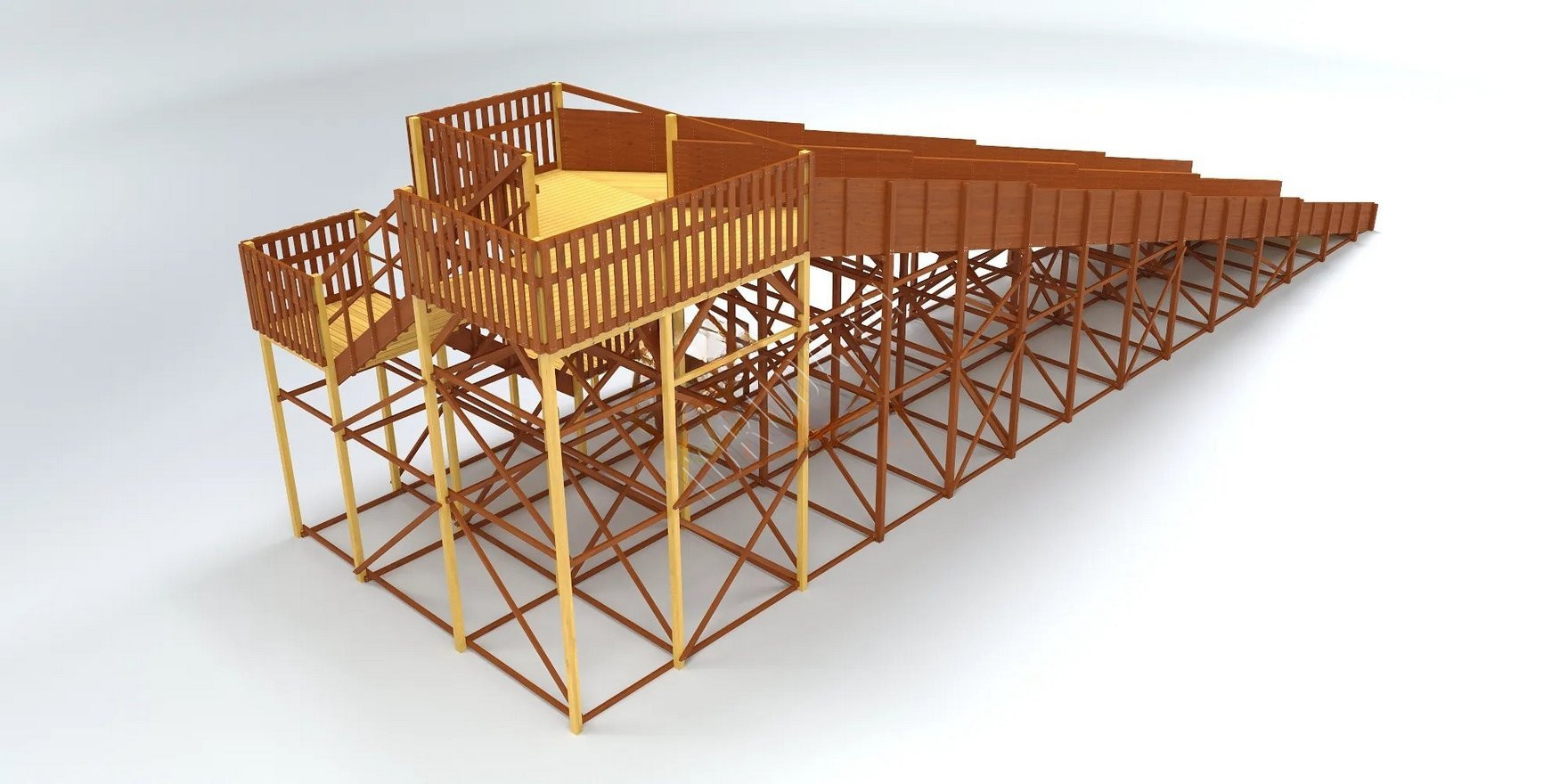 Зимняя горка сделана из качественного клееного бруса – это экологичный, долговечный и прочный материал с красивой древесной фактурой. Конструкция получается устойчивой и удобной, а для большей прочности поверхность покрывается специальным лакокрасочным составом, который повышает стойкость к внешним воздействиям. Покрытие имеет разрешающий сертификат для использования на детских площадках.