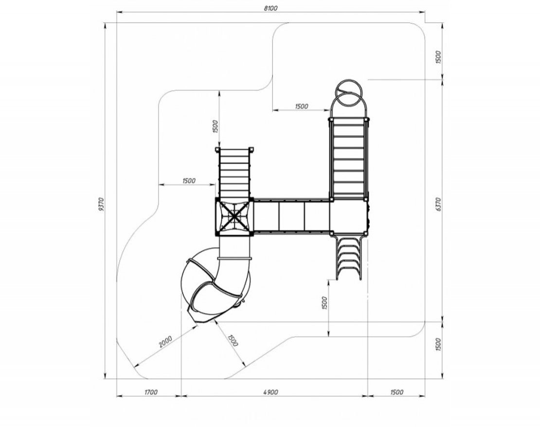 - Скат горки: H=2000 (тоннельный винтовой скат)