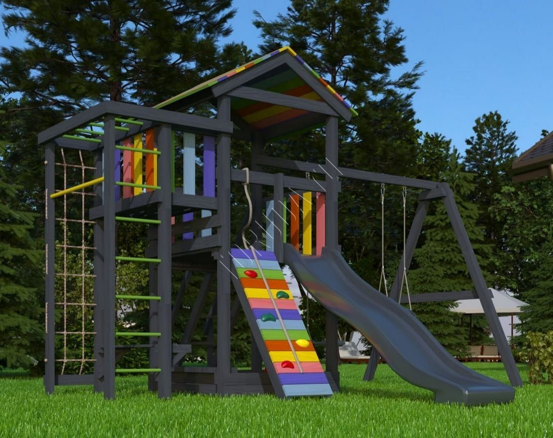 Детская площадка обладает довольно широким функционалом, предназначена для дачи, коттеджа.