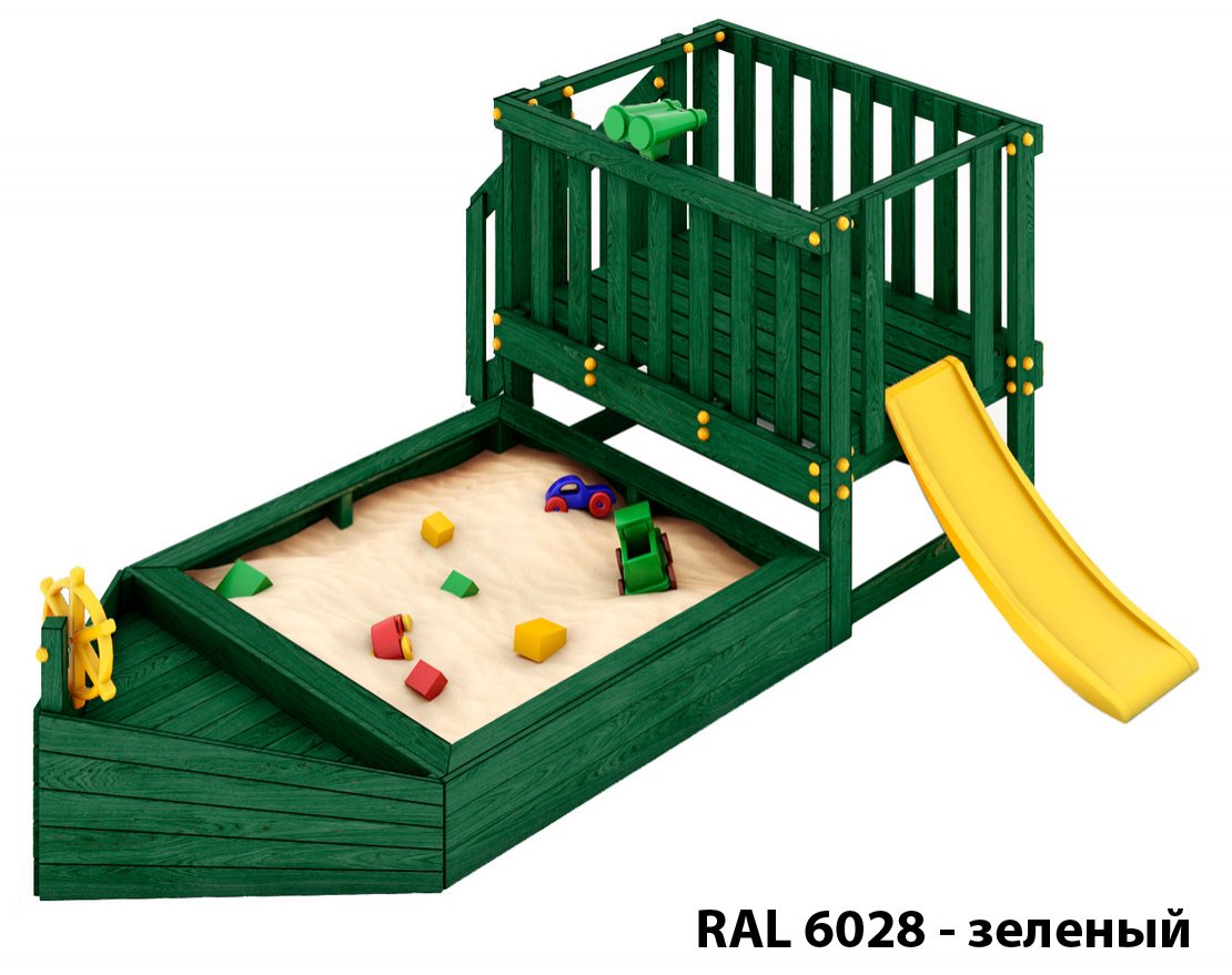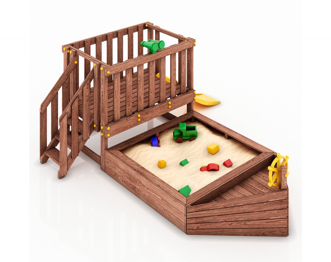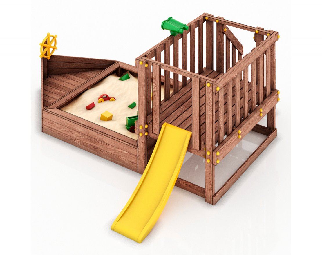 Детская песочница-кораблик и капитанский мостик с горкой с высоты 600 мм.