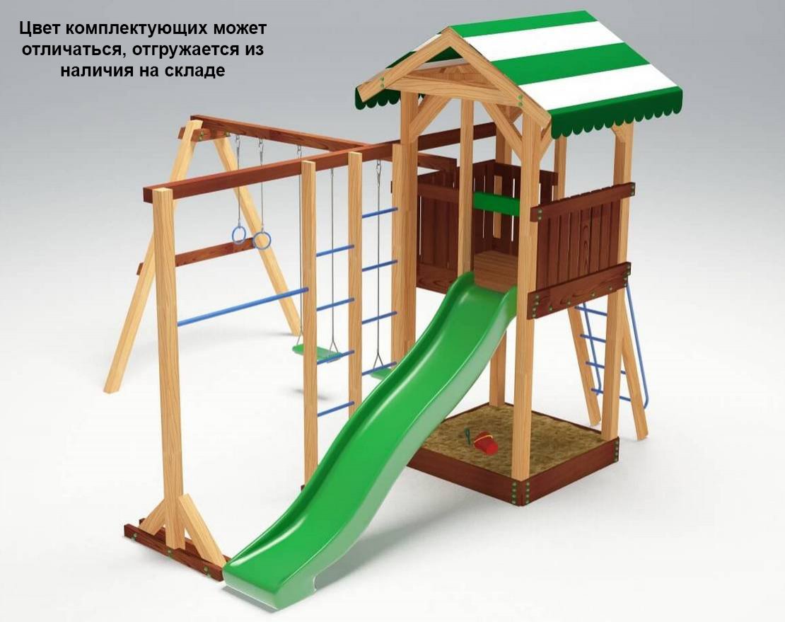 Площадка Парус 2 обладает довольно широким функционалом (который по желанию можно легко расширить). Детская площадка предназначена для дачи, коттеджа.