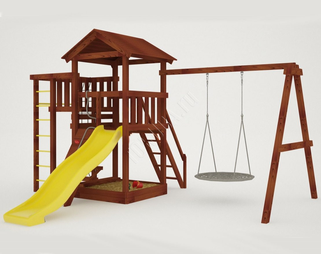 Вы можете разместить его на участке самостоятельно. Комплекс предназначен именно для улицы, поэтому установка производится всего один раз. Детская площадка подойдёт под любую погоду, конструкция не боится осадков, снега, морозов или сильного зноя.