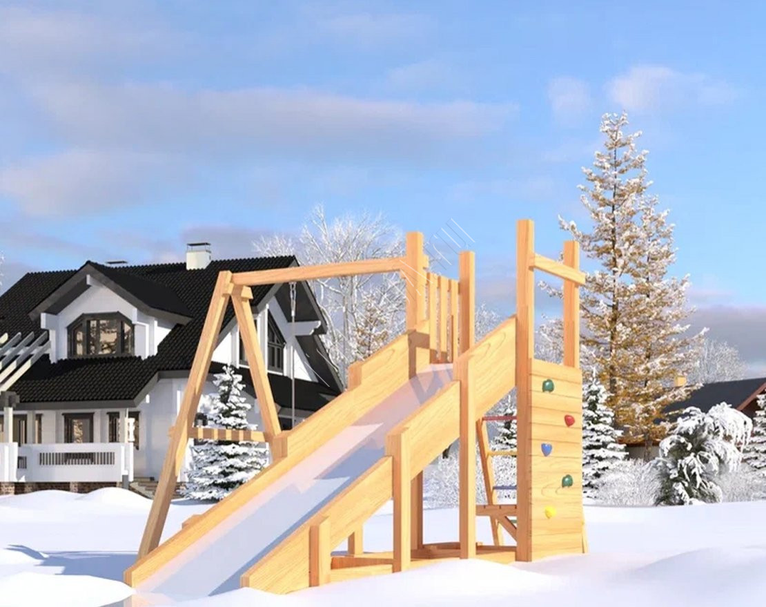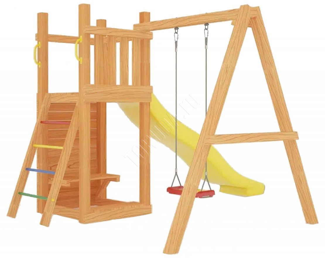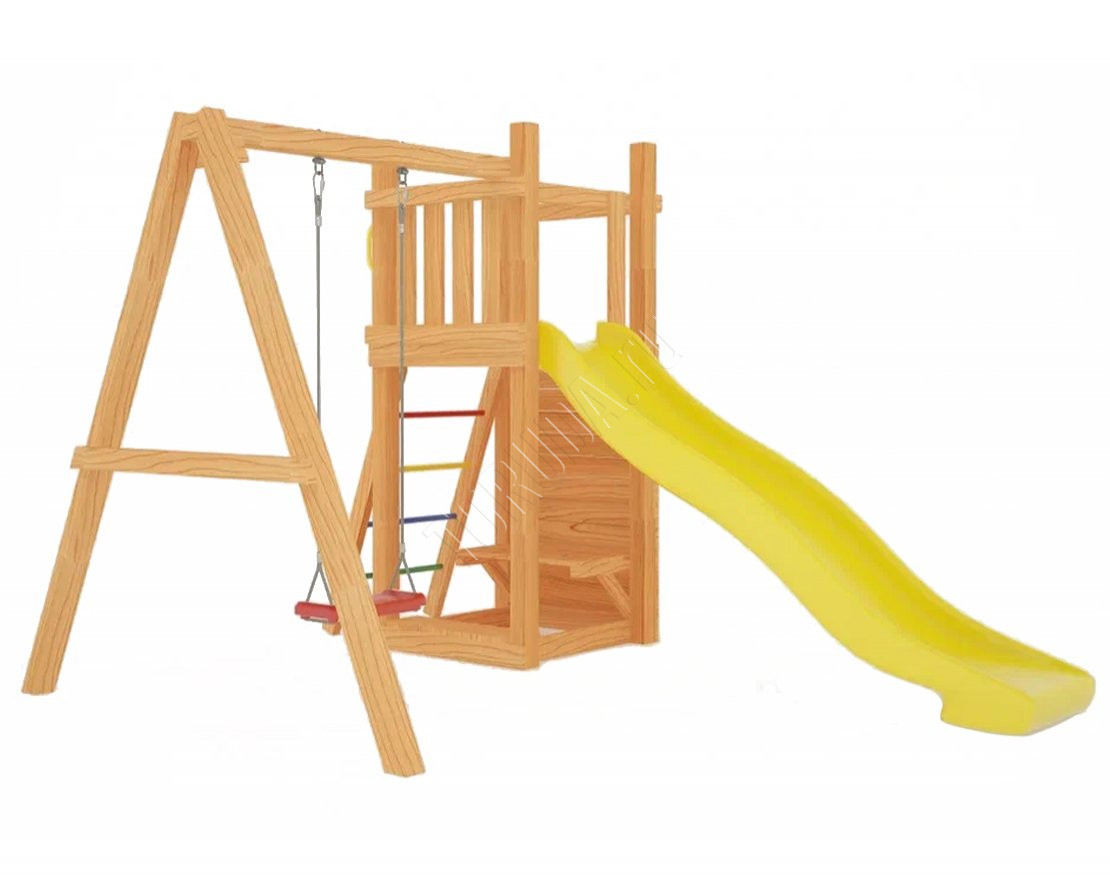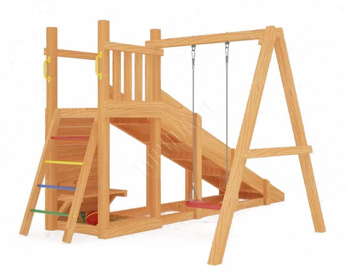 Площадка с качелями (всесезонная) наполнит досуг детей энергией и радостью. Она компактная и займёт всего лишь несколько квадратных метров участка дачного или загородного дома. Покрытие с антисептиком защитит натуральные составляющие от непогоды (наносится самостоятельно).