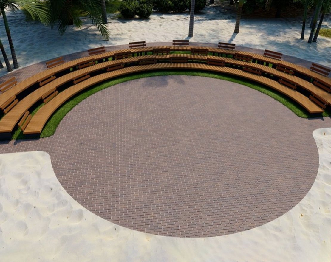 Радиус рассчитывается по внешней стороне скамейки