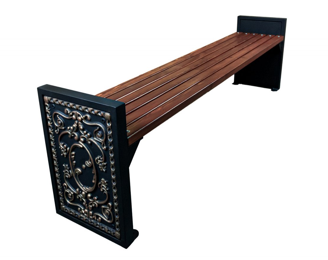 Изящная банкетка «Ампир» станет украшением городского сада или загородного участка. Сидение из бруса лиственницы 30х60 миллиметров удобно для отдыха.