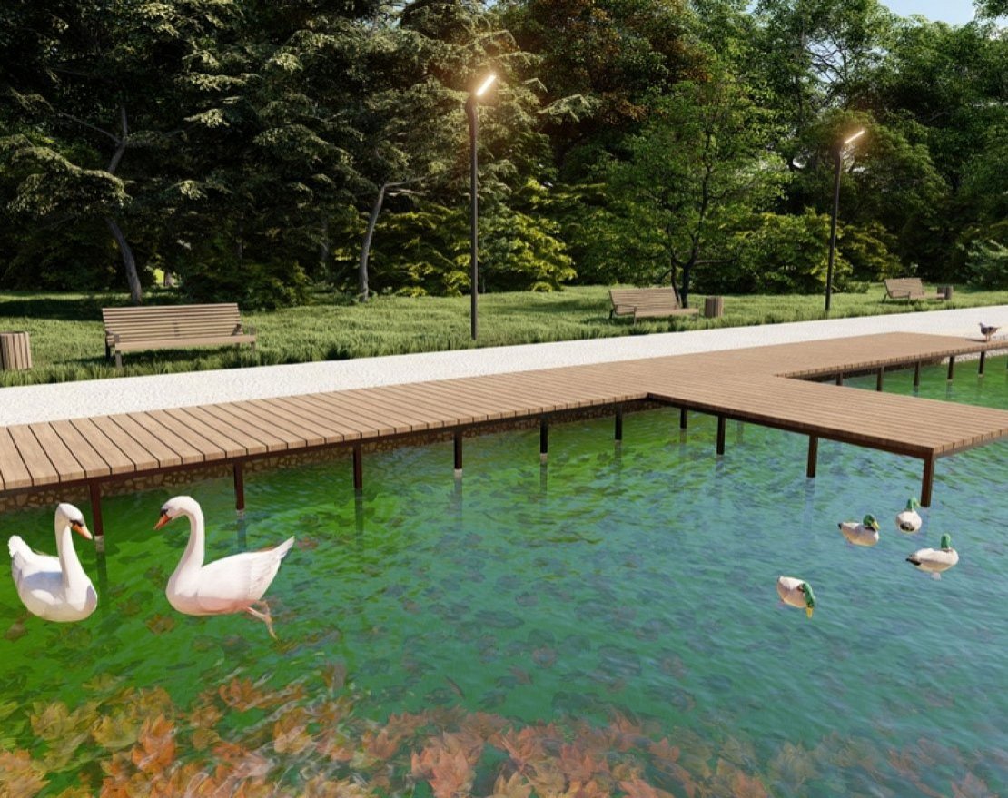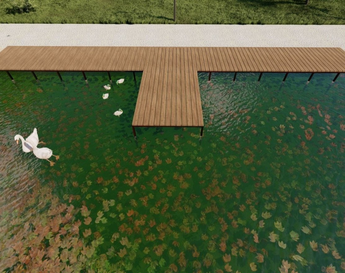 Пирс будет укреплен сваями, что обеспечит его стабильность и прочность.
