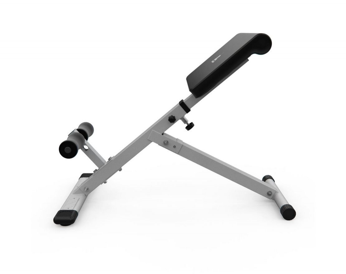 Высота тренажера регулируется, что позволяет настроить его под разный рост пользователей. Подушка имеет четыре положения регулировки в диапазоне 16 см, а размер подушки составляет 44 х 30 х 4,5 - 7 см. Валики для ног можно регулировать в трех положениях. Рама тренажера изготовлена из стального профиля размером 50х50х1,5 мм и 45х45х1,5 мм и выдерживает нагрузку до 120 кг.